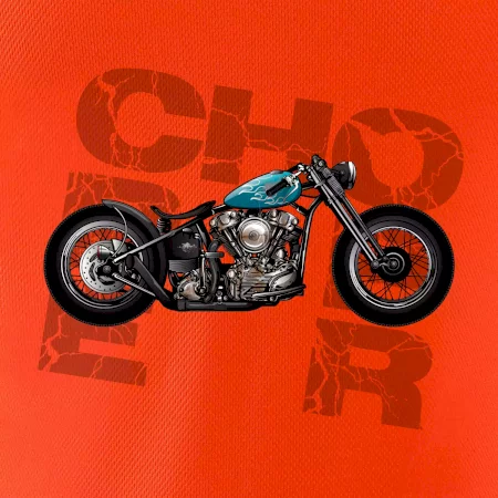 Triko pro motorkáře, na kterém je modrá motorka chopper. Motocykl by měl mít na triku každý správný motorkář. Moto triko s motorkou je vhodný dárek pro motorkáře.