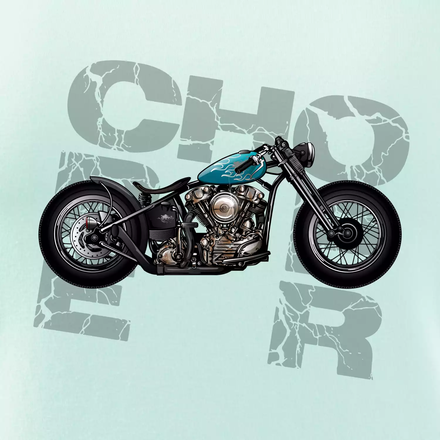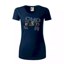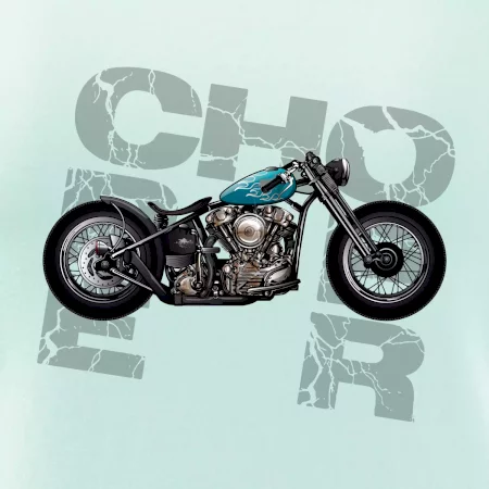Triko pro motorkáře, na kterém je modrá motorka chopper. Motocykl by měl mít na triku každý správný motorkář. Moto triko s motorkou je vhodný dárek pro motorkáře.