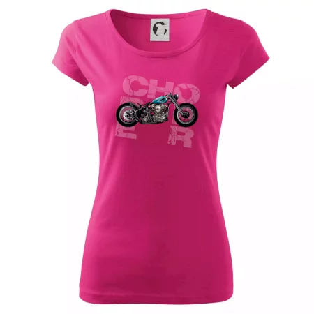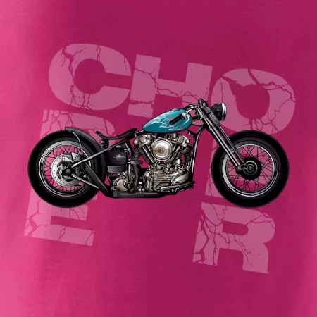 Triko pro motorkáře, na kterém je modrá motorka chopper. Motocykl by měl mít na triku každý správný motorkář. Moto triko s motorkou je vhodný dárek pro motorkáře.