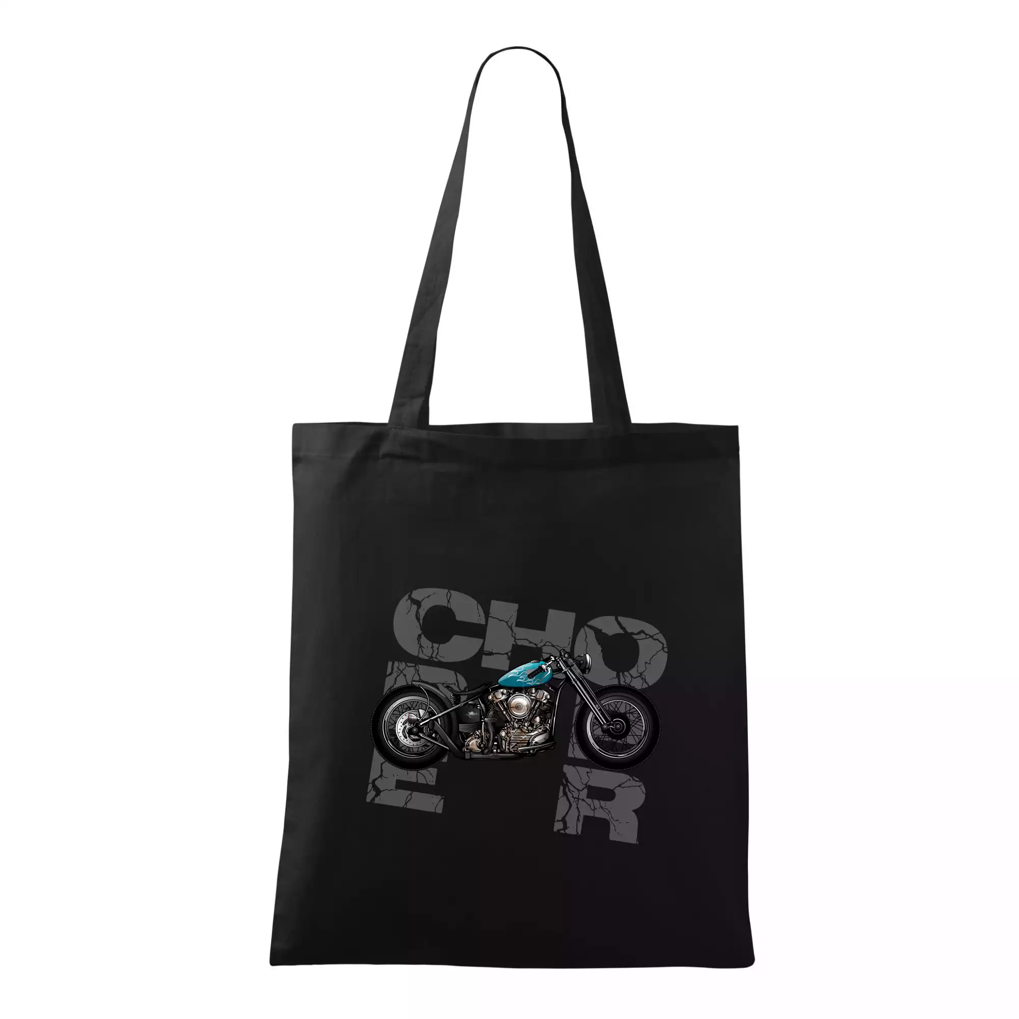 Triko pro motorkáře, na kterém je modrá motorka chopper. Motocykl by měl mít na triku každý správný motorkář. Moto triko s motorkou je vhodný dárek pro motorkáře.