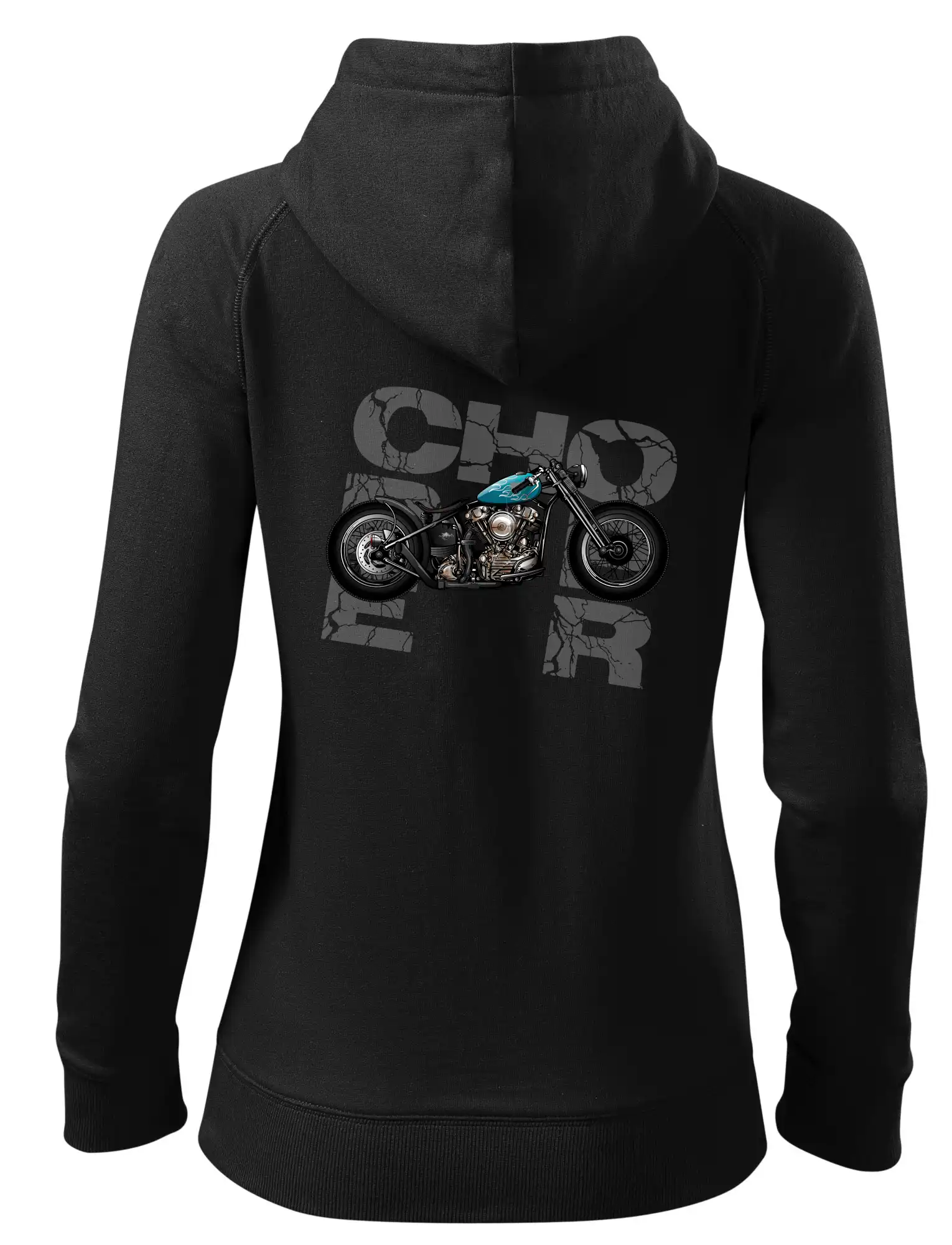 Triko pro motorkáře, na kterém je modrá motorka chopper. Motocykl by měl mít na triku každý správný motorkář. Moto triko s motorkou je vhodný dárek pro motorkáře.