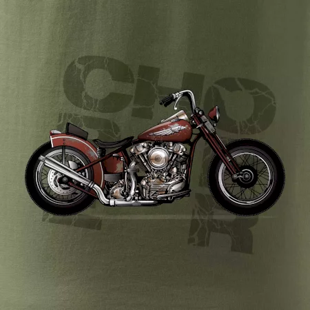Triko pro motorkáře, na kterém je červená motorka chopper. Motocykl by měl mít na triku každý správný motorkář. Moto triko s motorkou je vhodný dárek pro motorkáře.