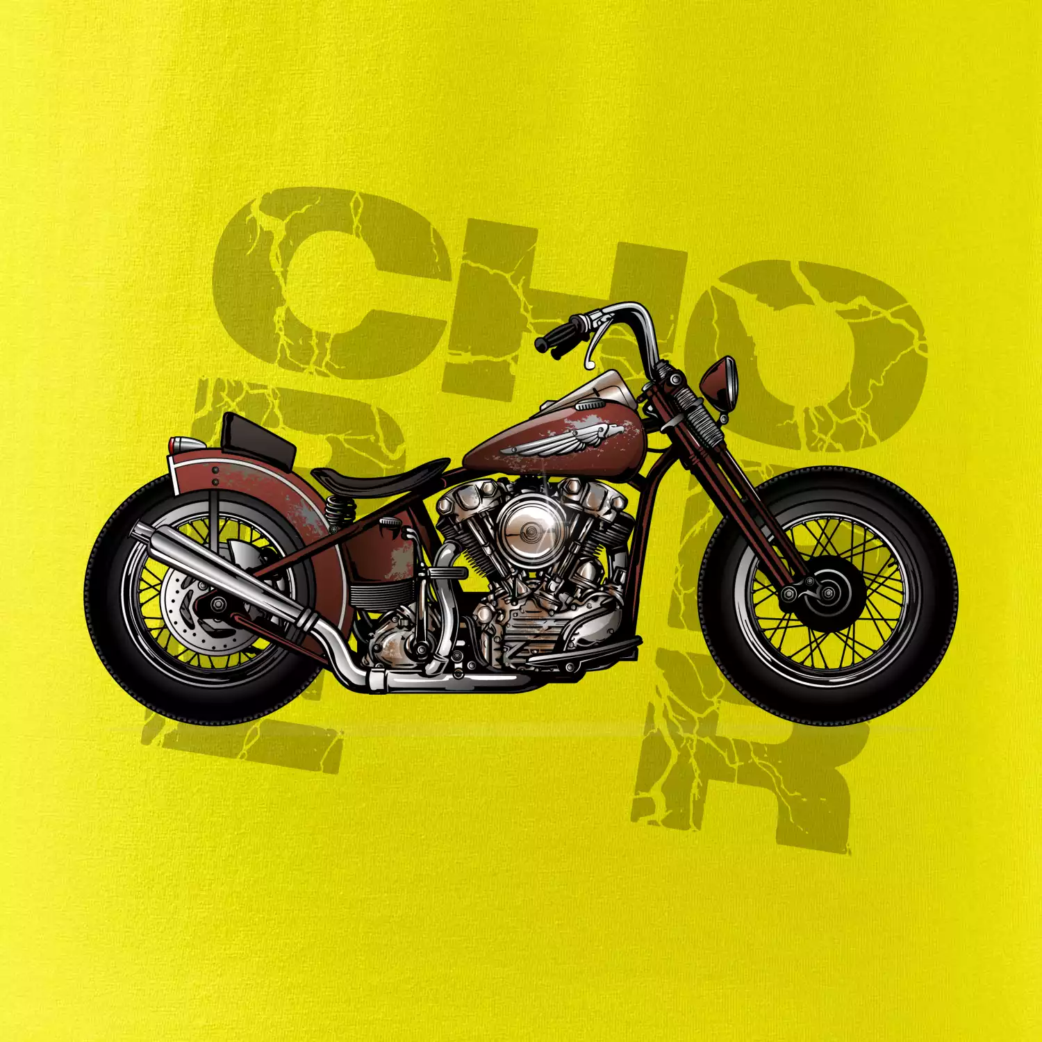 Triko pro motorkáře, na kterém je červená motorka chopper. Motocykl by měl mít na triku každý správný motorkář. Moto triko s motorkou je vhodný dárek pro motorkáře.