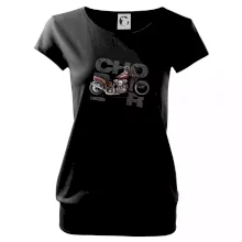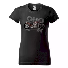 Triko pro motorkáře, na kterém je červená motorka chopper. Motocykl by měl mít na triku každý správný motorkář. Moto triko s motorkou je vhodný dárek pro motorkáře.