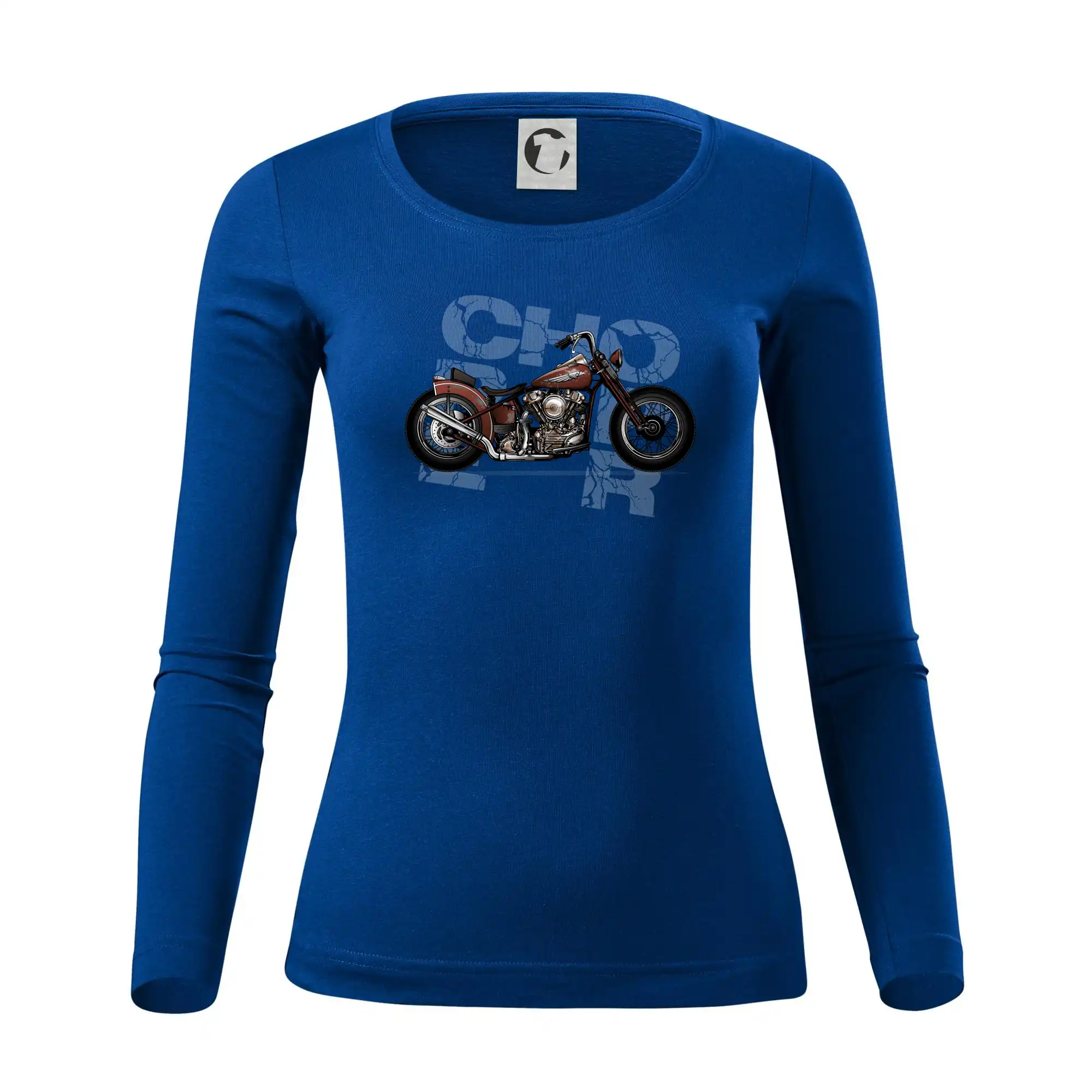 Triko pro motorkáře, na kterém je červená motorka chopper. Motocykl by měl mít na triku každý správný motorkář. Moto triko s motorkou je vhodný dárek pro motorkáře.
