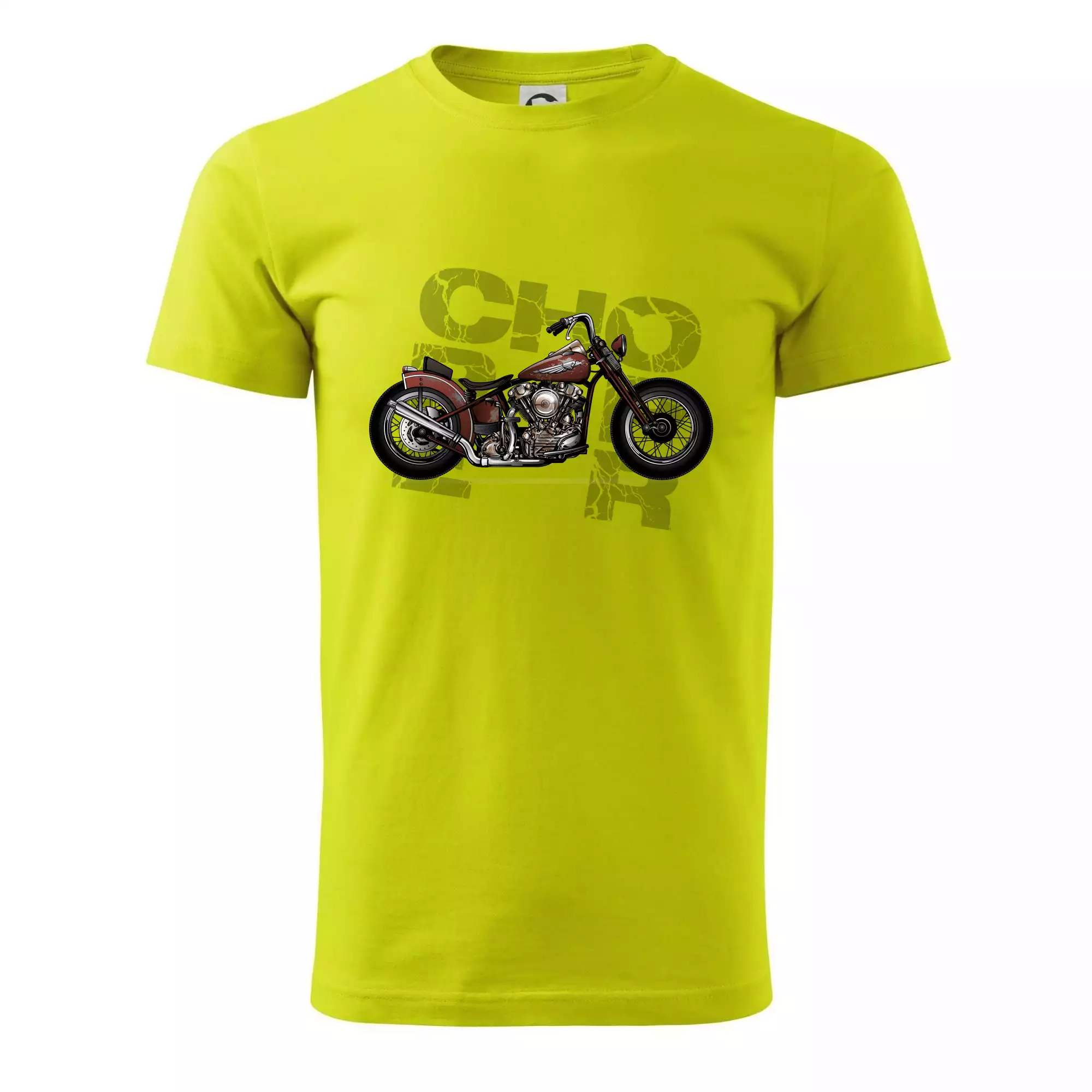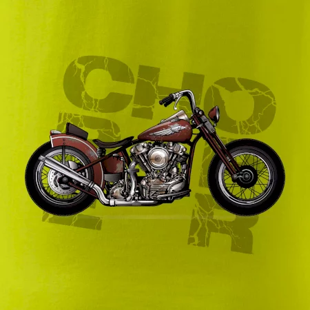 Triko pro motorkáře, na kterém je červená motorka chopper. Motocykl by měl mít na triku každý správný motorkář. Moto triko s motorkou je vhodný dárek pro motorkáře.