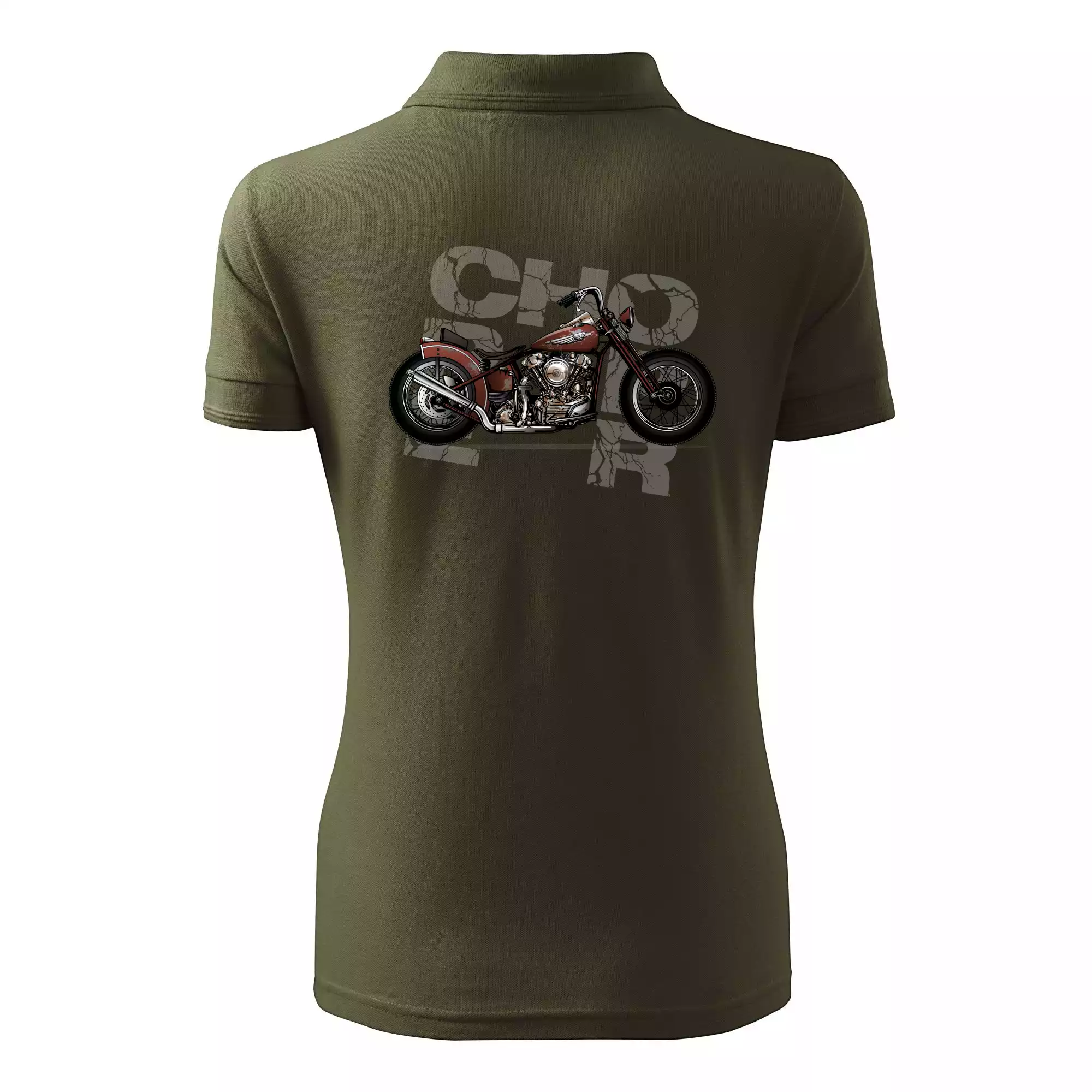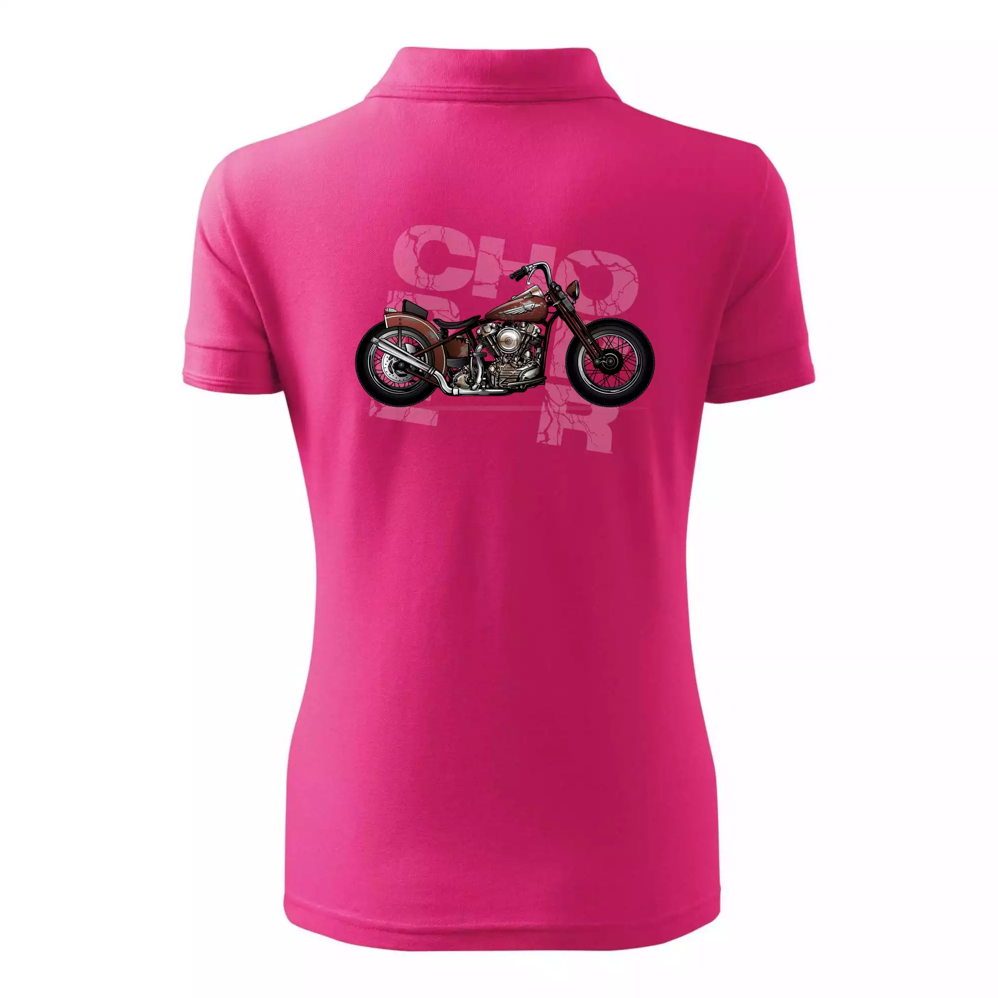 Triko pro motorkáře, na kterém je červená motorka chopper. Motocykl by měl mít na triku každý správný motorkář. Moto triko s motorkou je vhodný dárek pro motorkáře.