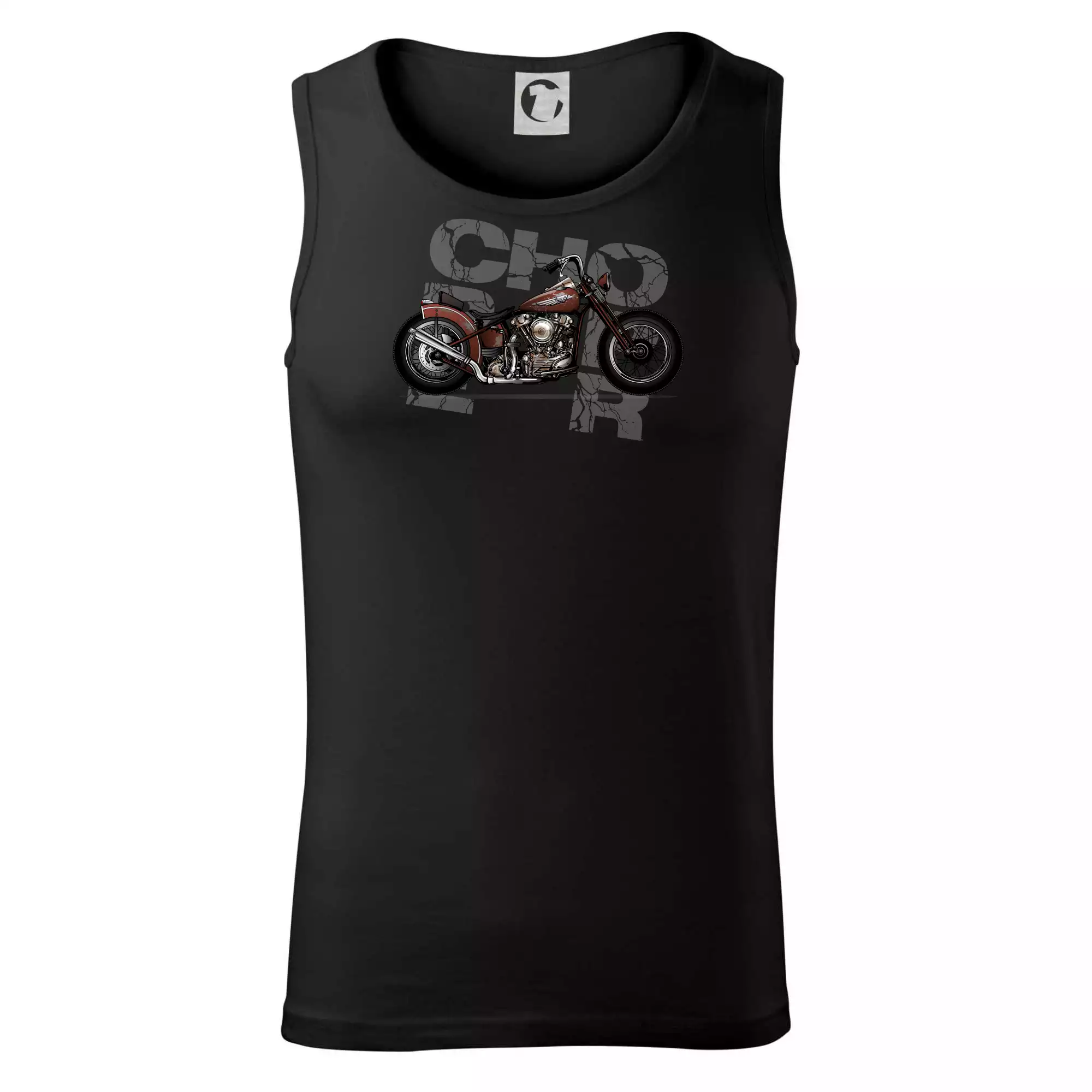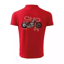Triko pro motorkáře, na kterém je červená motorka chopper. Motocykl by měl mít na triku každý správný motorkář. Moto triko s motorkou je vhodný dárek pro motorkáře.