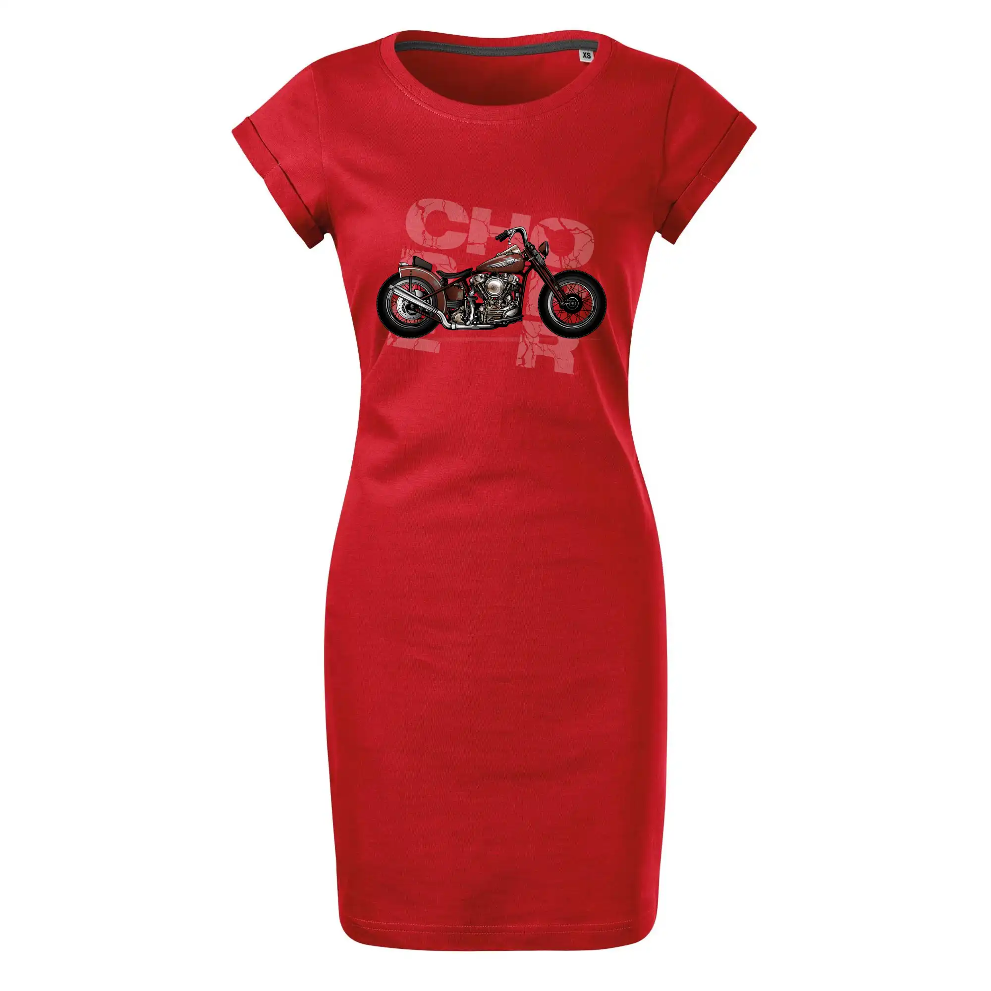 Triko pro motorkáře, na kterém je červená motorka chopper. Motocykl by měl mít na triku každý správný motorkář. Moto triko s motorkou je vhodný dárek pro motorkáře.