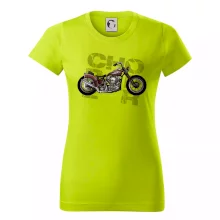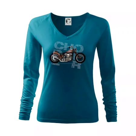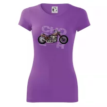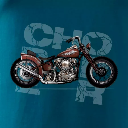 Triko pro motorkáře, na kterém je červená motorka chopper. Motocykl by měl mít na triku každý správný motorkář. Moto triko s motorkou je vhodný dárek pro motorkáře.