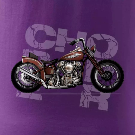 Triko pro motorkáře, na kterém je červená motorka chopper. Motocykl by měl mít na triku každý správný motorkář. Moto triko s motorkou je vhodný dárek pro motorkáře.