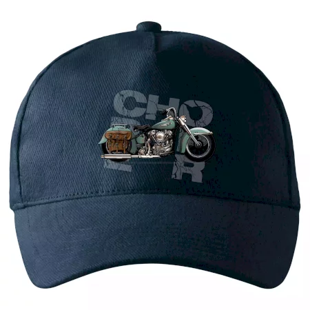 Triko pro motorkáře, na kterém je modrá motorka chopper s brašnou. Motocykl by měl mít na triku každý správný motorkář. Moto triko s motorkou je vhodný dárek pro motorkáře.