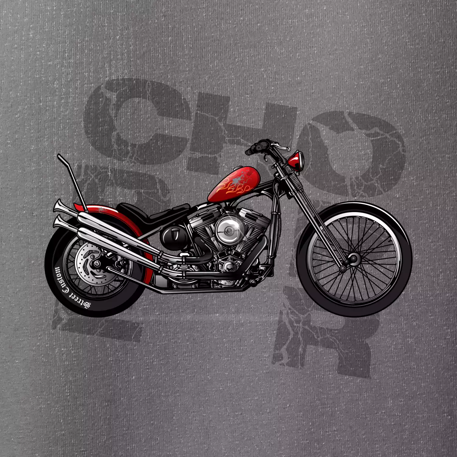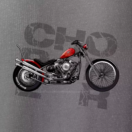 Triko pro motorkáře, na kterém je červená motorka chopper. Motocykl by měl mít na triku každý správný motorkář. Moto triko s motorkou je vhodný dárek pro motorkáře.
