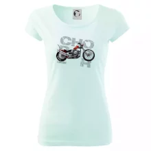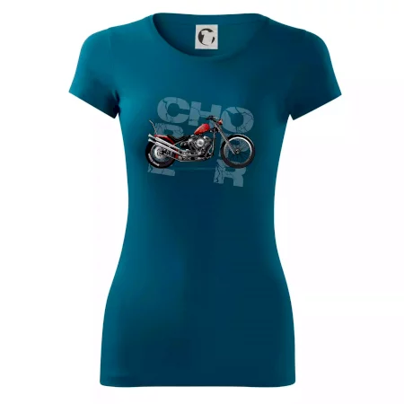 Triko pro motorkáře, na kterém je červená motorka chopper. Motocykl by měl mít na triku každý správný motorkář. Moto triko s motorkou je vhodný dárek pro motorkáře.