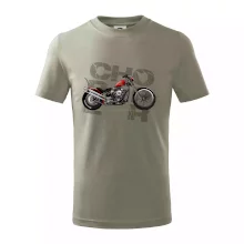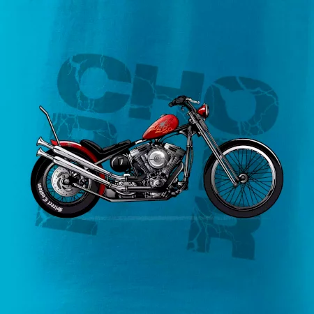 Triko pro motorkáře, na kterém je červená motorka chopper. Motocykl by měl mít na triku každý správný motorkář. Moto triko s motorkou je vhodný dárek pro motorkáře.