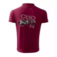 Triko pro motorkáře, na kterém je červená motorka chopper. Motocykl by měl mít na triku každý správný motorkář. Moto triko s motorkou je vhodný dárek pro motorkáře.