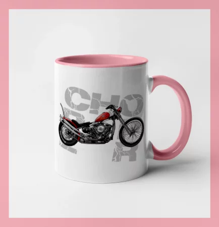 Triko pro motorkáře, na kterém je červená motorka chopper. Motocykl by měl mít na triku každý správný motorkář. Moto triko s motorkou je vhodný dárek pro motorkáře.
