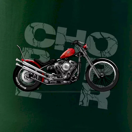 Triko pro motorkáře, na kterém je červená motorka chopper. Motocykl by měl mít na triku každý správný motorkář. Moto triko s motorkou je vhodný dárek pro motorkáře.