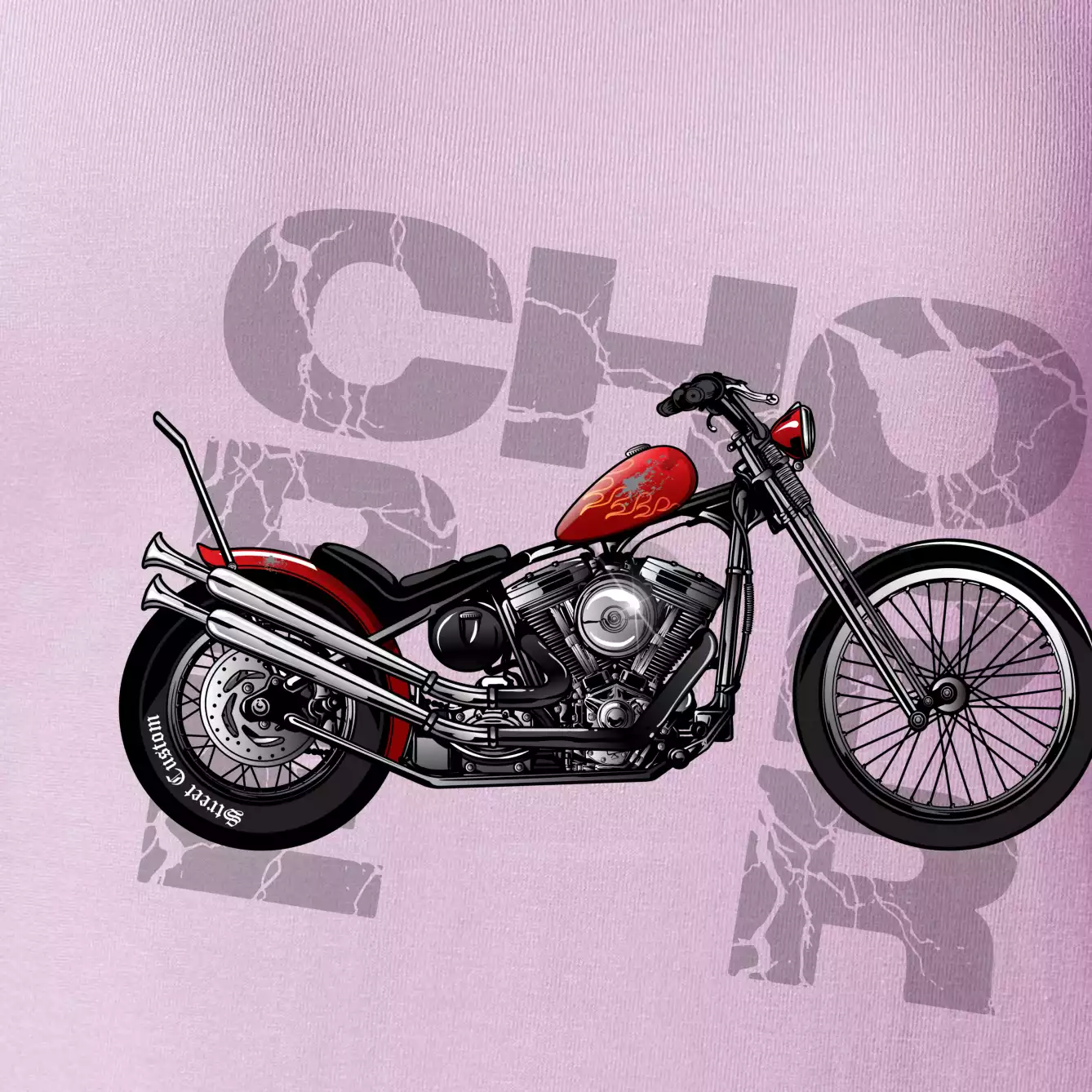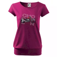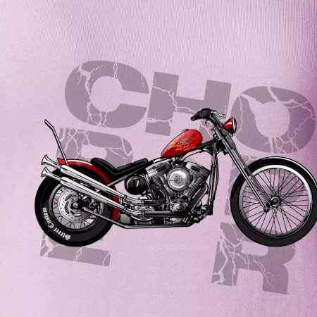 Triko pro motorkáře, na kterém je červená motorka chopper. Motocykl by měl mít na triku každý správný motorkář. Moto triko s motorkou je vhodný dárek pro motorkáře.