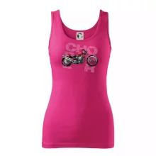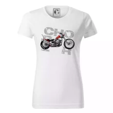 Triko pro motorkáře, na kterém je červená motorka chopper. Motocykl by měl mít na triku každý správný motorkář. Moto triko s motorkou je vhodný dárek pro motorkáře.