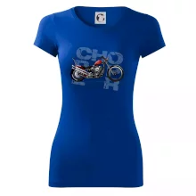 Triko pro motorkáře, na kterém je červená motorka chopper. Motocykl by měl mít na triku každý správný motorkář. Moto triko s motorkou je vhodný dárek pro motorkáře.