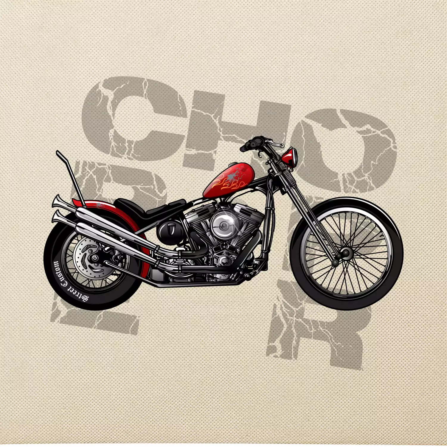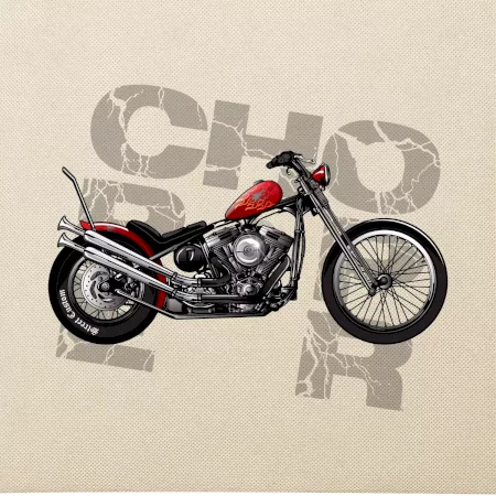 Triko pro motorkáře, na kterém je červená motorka chopper. Motocykl by měl mít na triku každý správný motorkář. Moto triko s motorkou je vhodný dárek pro motorkáře.