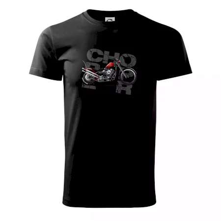 Triko pro motorkáře, na kterém je červená motorka chopper. Motocykl by měl mít na triku každý správný motorkář. Moto triko s motorkou je vhodný dárek pro motorkáře.
