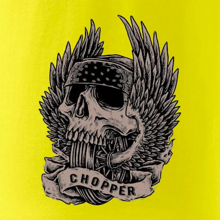 Triko pro motorkáře, na kterém je pekelný jezdec - lebka a kolo s křídly, si musí pořídit každý milovník motorek. Chopper s trikem, na kterém je motorkářská lebka s křídly je skvělá kombinace na vyjížďku.