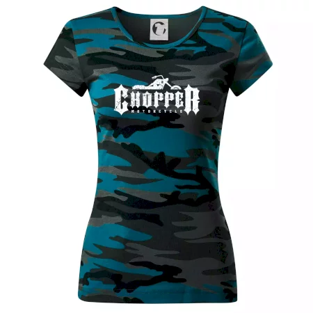 Triko pro motorkáře, na kterém je nápis chopper motorcycle. Motocykl by měl mít na triku každý správný motorkář. Moto triko, na kterém je motorka je vhodný dárek pro motorkáře.