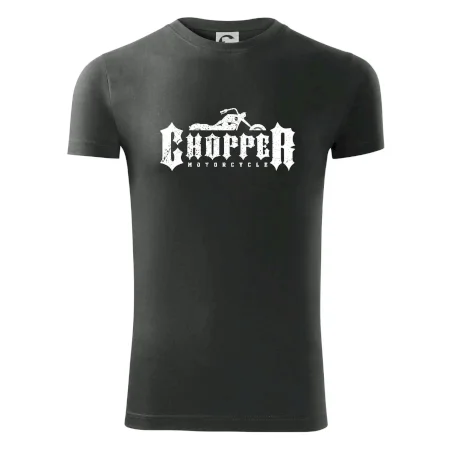 Triko pro motorkáře, na kterém je nápis chopper motorcycle. Motocykl by měl mít na triku každý správný motorkář. Moto triko, na kterém je motorka je vhodný dárek pro motorkáře.