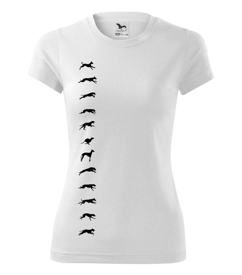 Chrti na tričku v pohybu. Od shora až dolu