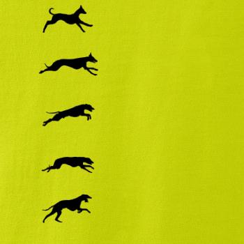Chrti na tričku v pohybu. Od shora až dolu