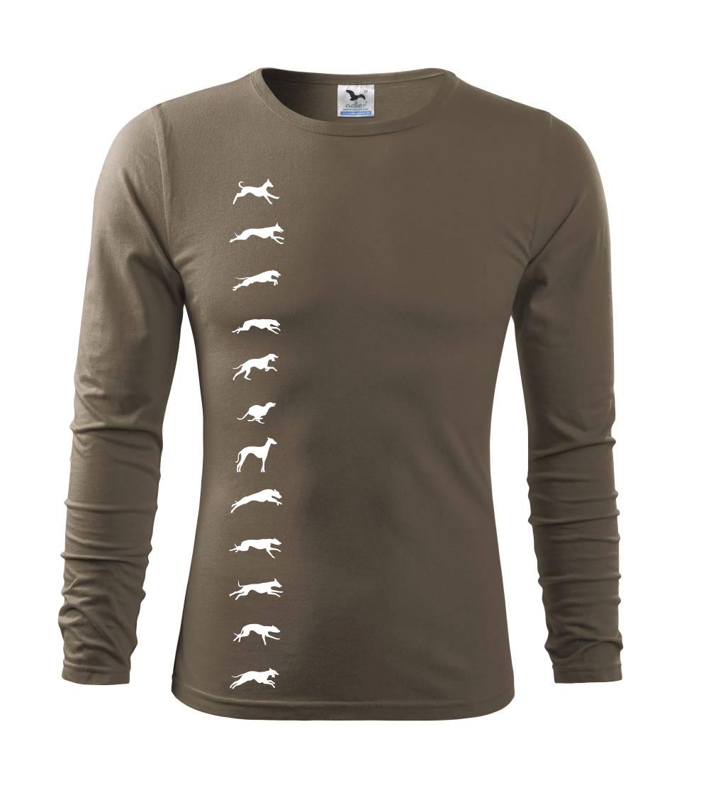 Chrti na tričku v pohybu. Od shora až dolu