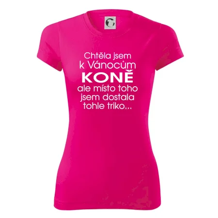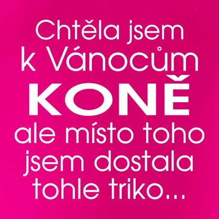Originální dárek pro holku narychlo, skvělý vánoční dárek pro dceru, udělej radost k Vánocům kamarádce naším trikem a převap jí originálním a vtipným dárkem k Vánocům. Perfektní dárek pro holku co si přeje koně nebo alespoň poníka pod stromeček. Když už má koňašřka úplně všechno k Vánocům s tímto trikem určitě chybu neuděláš!