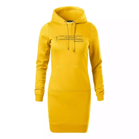 Dámské mikinové šaty MALFINI Snap 419 jsou ideální volbou pro ženy, které hledají pohodlný a stylový kousek pro volný čas nebo každodenní nošení. Lehce vypasovaný střih s bočními švy podtrhuje ženskou siluetu, zatímco kapuce s podšívkou a stahovací šňůrkou dodává ležérní vzhled.
