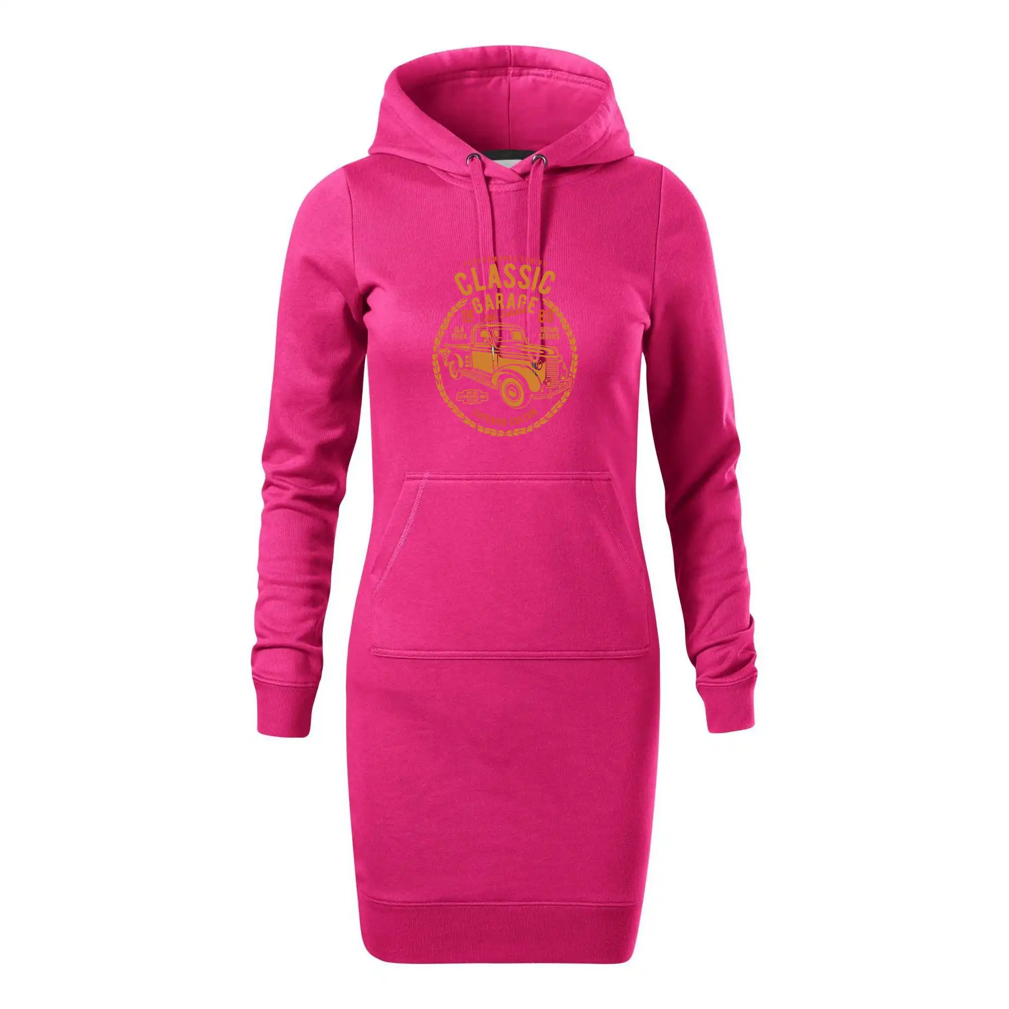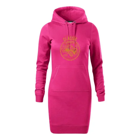Dámské mikinové šaty MALFINI Snap 419 jsou ideální volbou pro ženy, které hledají pohodlný a stylový kousek pro volný čas nebo každodenní nošení. Lehce vypasovaný střih s bočními švy podtrhuje ženskou siluetu, zatímco kapuce s podšívkou a stahovací šňůrkou dodává ležérní vzhled. Šaty mají délku nad kolena a jsou vybaveny nakládanou kapsou ve stylu „klokanky“. Materiál je měkký a příjemný na dotek díky směsi bavlny a polyesteru s nepočesanou vnitřní stranou.