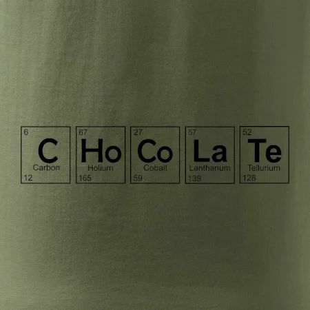 Trička a mikiny pro milovníky chemie, originálních věcí a humoru. Periodické tabulky lze provést v jakékoliv variantě! Pokud ti není chemie a čokoláda cizí, tohle triko pro tebe bude to pravé. Triko, na kterém je periodická tabulka prvků, je vhodný dárek pro milovníka sladkého. Triko s nápisem CHoCoLaTe vytvořeným z prvků periodické tabulky.