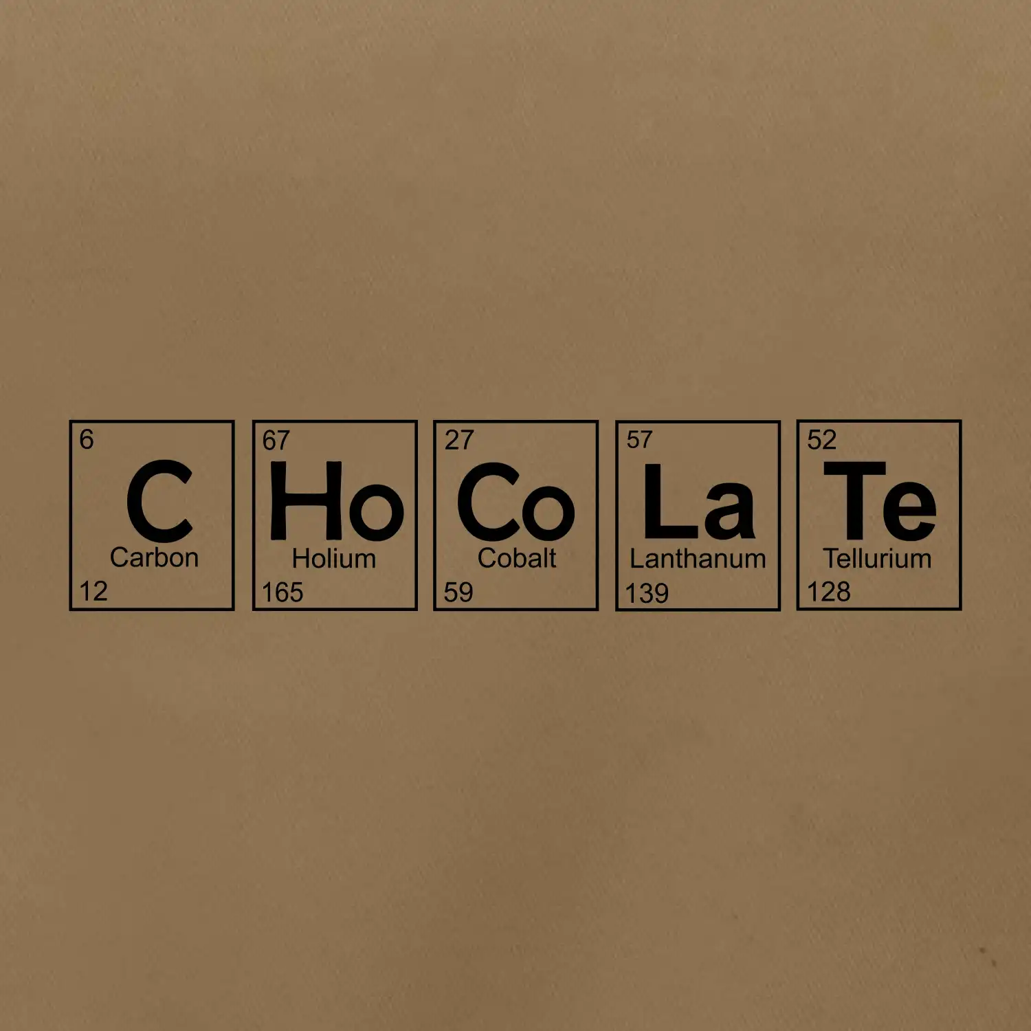 Trička a mikiny pro milovníky chemie, originálních věcí a humoru. Periodické tabulky lze provést v jakékoliv variantě! Pokud ti není chemie a čokoláda cizí, tohle triko pro tebe bude to pravé. Triko, na kterém je periodická tabulka prvků, je vhodný dárek pro milovníka sladkého. Triko s nápisem CHoCoLaTe vytvořeným z prvků periodické tabulky.