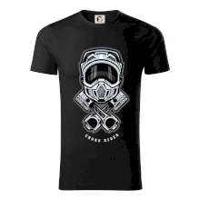 Pánské tričko s krátkým rukávem vyšší gramáže. Módní, přiléhavý střih s bočními švy. Úzký lem průkrčníku ze žebrového úpletu s přídavkem 5 % elastanu. Vnitřní část zadního průkrčníku začištěna páskou. Zpevněný ramenní šev.