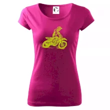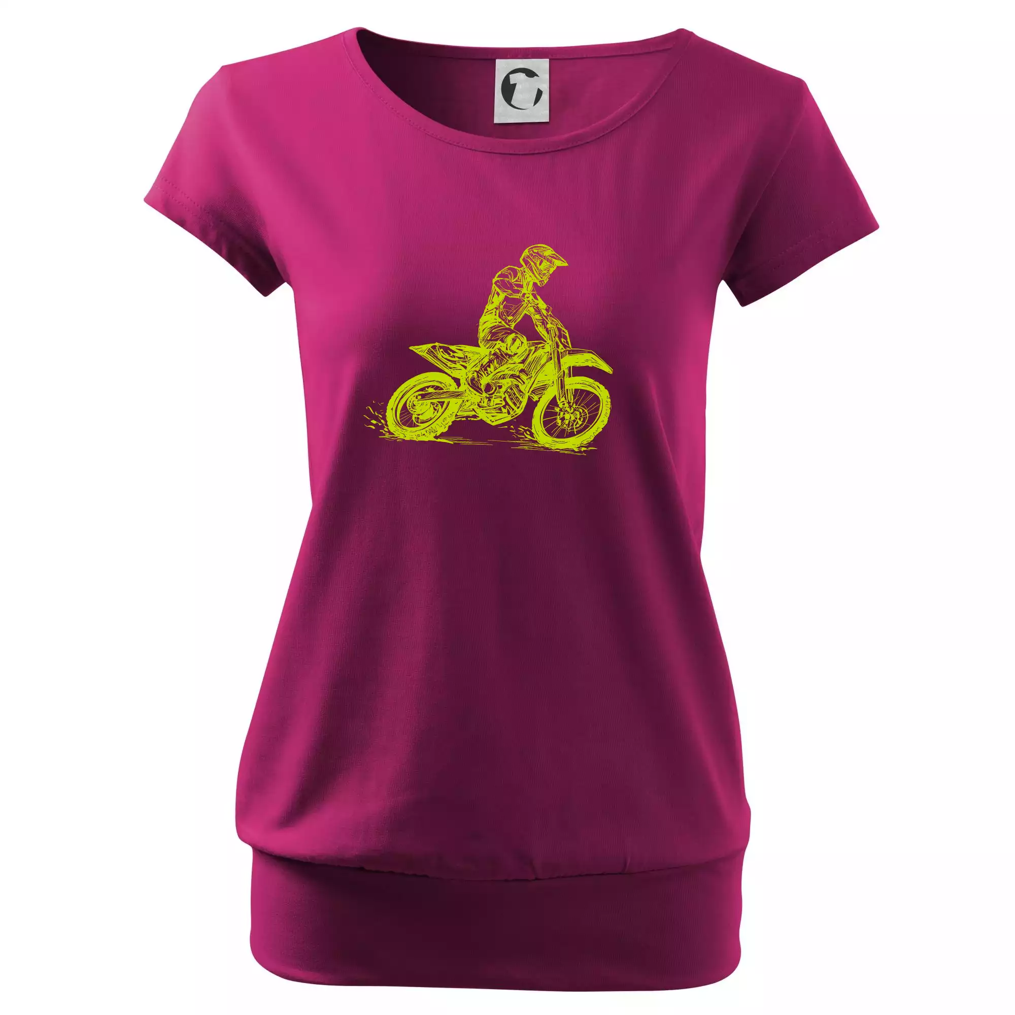 Trendové dámské triko s velmi krátkým rukávem, volnějšího střihu, v dolním kraji všité do širokého lemu. Kulatý průkrčník s úzkým lemem ze shodného materiálu.