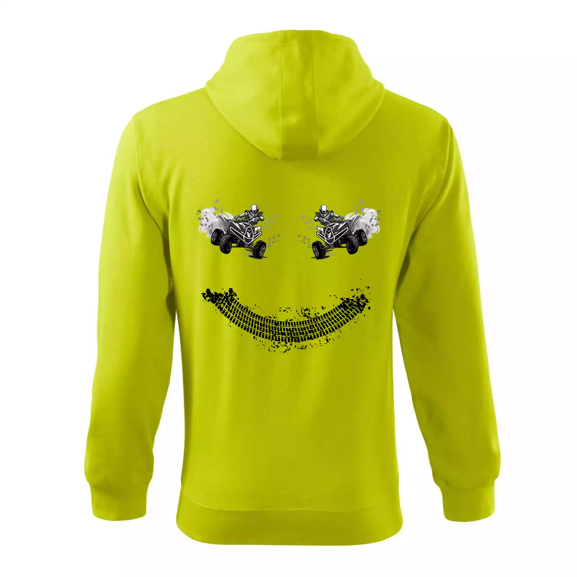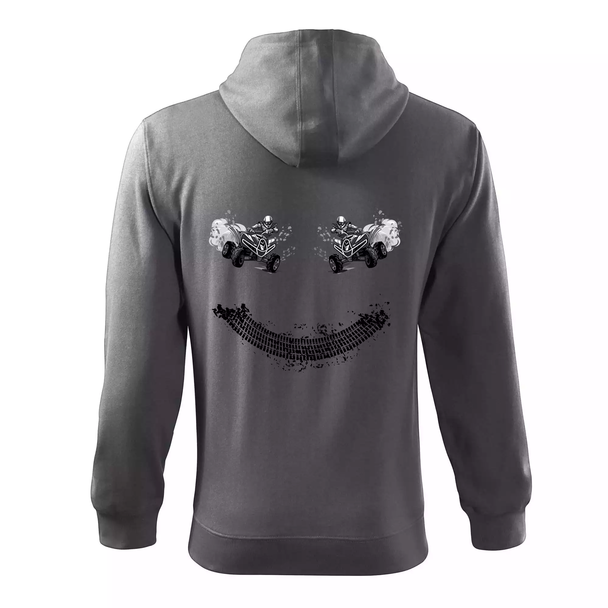 Triko pro motoristy, na kterém není jen jedna off road čtyřkolka ale hned dvě, je skvělý dárek pro motoristy. Stopa pneumatiky spolu se čtyřkolkami tvoří usměvavého smajlíka. Triko se čtyřkolkou by doma měl mít každý správný off-road motorista. Triko se čtyřkolkou je vhodný dárek pro motoristu.