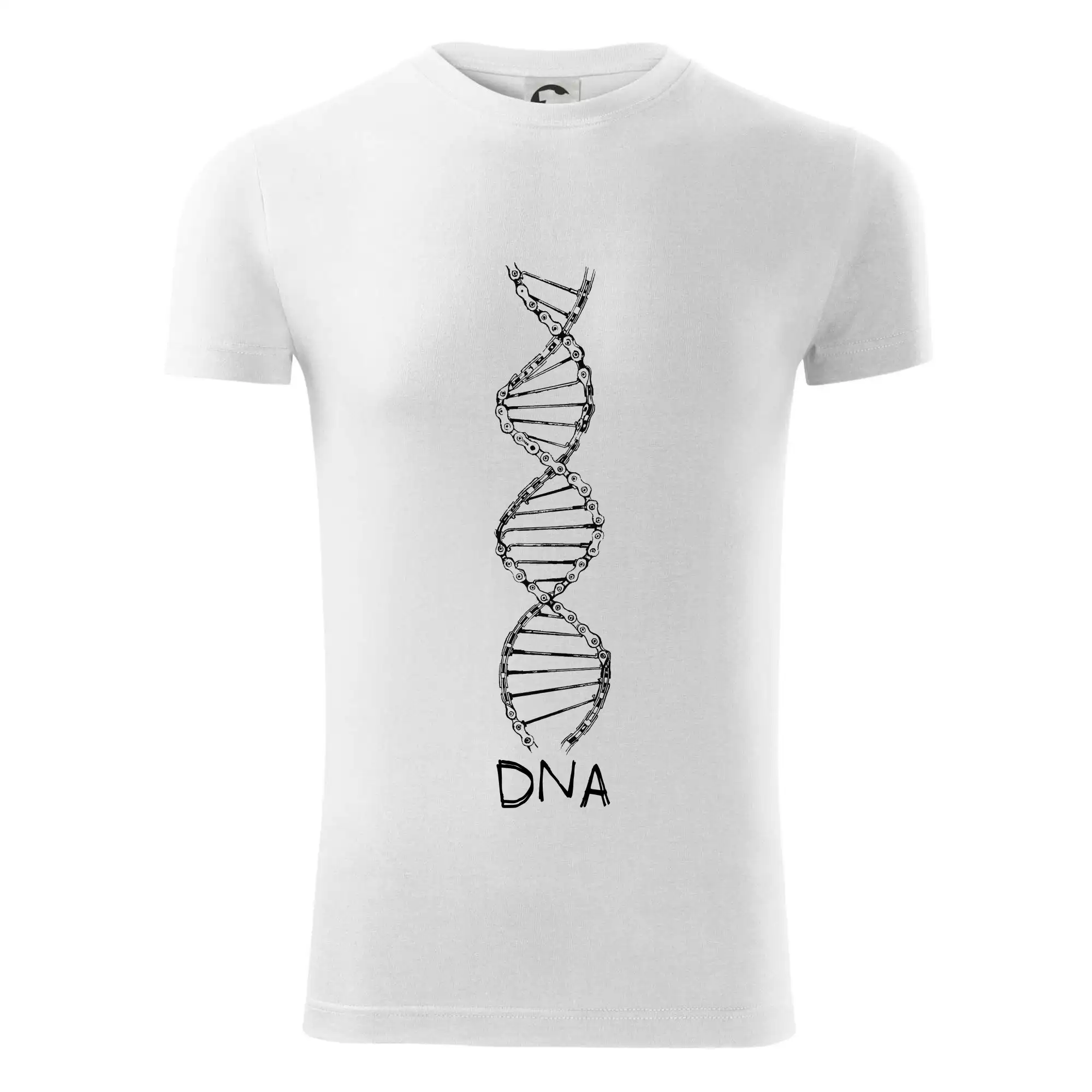 Cyklistické triko pro pravého cyklistu, který má DNA z řetězu! Cyklo triko jako krásný dárek pro cyklistu, třeba i s dárkovým balením a máš narozeniny nebo Vánoce pořešené. Triko pro cyklistu zdobí řetěz ve tvaru šroubovice DNA. Pokud máš rád sport a cyklistika je tvůj život, pak neváhej a objednávej.