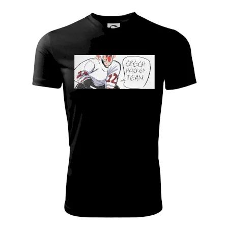 Hokejové triko pro hokejového fanouška. Vybav se na letošní mistrovství světa v ledním hokeji trikem, na kterém je hokejista a nápis "Czech hockey team". Hokejové mistrovství světa s trikem českého ledního hokeje ukáže, že jsi pravý hokejový fanda. Vhodný dárek pro hokejového fanouška.