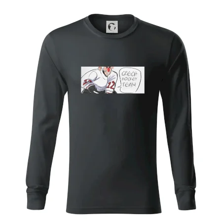 Hokejové triko pro hokejového fanouška. Vybav se na letošní mistrovství světa v ledním hokeji trikem, na kterém je hokejista a nápis "Czech hockey team". Hokejové mistrovství světa s trikem českého ledního hokeje ukáže, že jsi pravý hokejový fanda. Vhodný dárek pro hokejového fanouška.