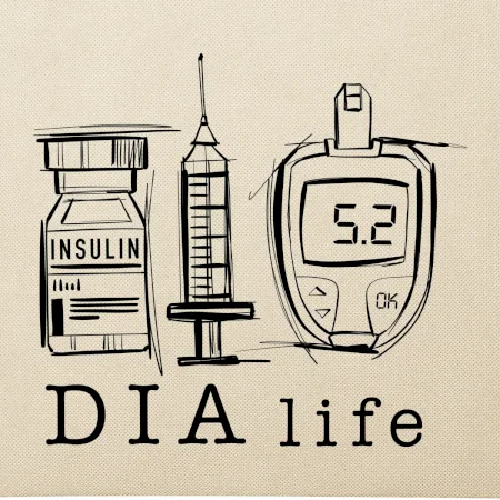 D I A life - kreslený insulin injekce a glukometr