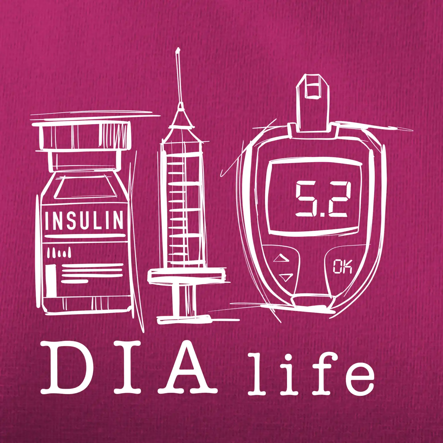 D I A life - kreslený insulin injekce a glukometr