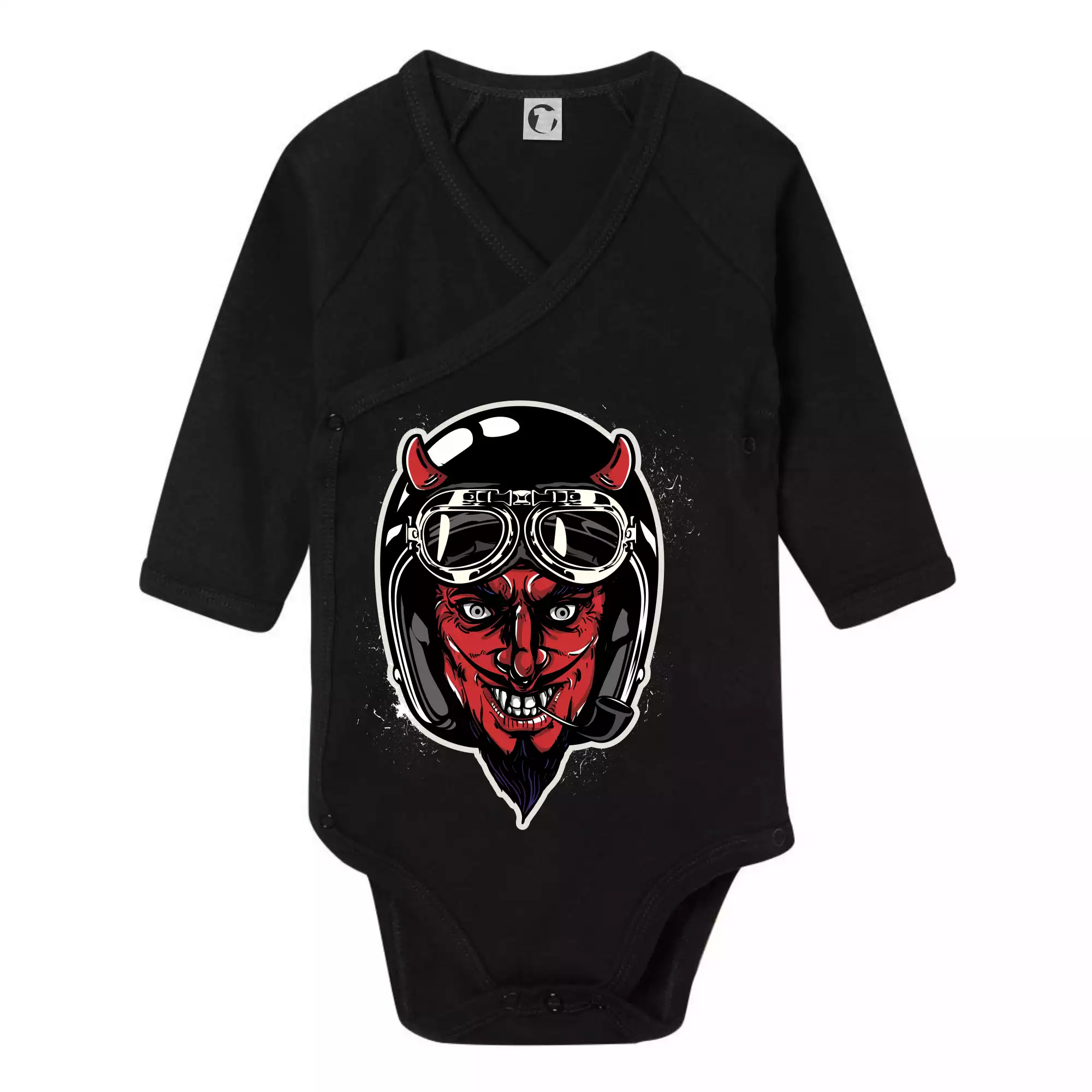 Triko pro motorkáře, na kterém je ďábel s helmou, je skvělý dárek pro motorkáře. Černá motorkářská helma ochrání ďábla i tebe. Každý motorkář bude mít triko s ďáblem rád, obzvlášť motorkář, který má rohy. Moto triko je vhodný dárek pokud jsi pravý motorkář.