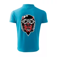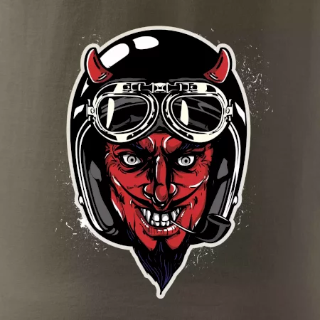 Triko pro motorkáře, na kterém je ďábel s helmou, je skvělý dárek pro motorkáře. Černá motorkářská helma ochrání ďábla i tebe. Každý motorkář bude mít triko s ďáblem rád, obzvlášť motorkář, který má rohy. Moto triko je vhodný dárek pokud jsi pravý motorkář.