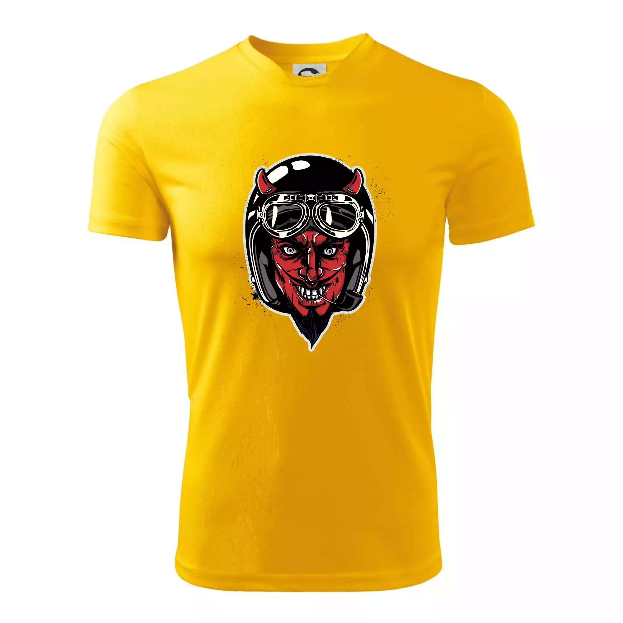 Triko pro motorkáře, na kterém je ďábel s helmou, je skvělý dárek pro motorkáře. Černá motorkářská helma ochrání ďábla i tebe. Každý motorkář bude mít triko s ďáblem rád, obzvlášť motorkář, který má rohy. Moto triko je vhodný dárek pokud jsi pravý motorkář.