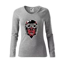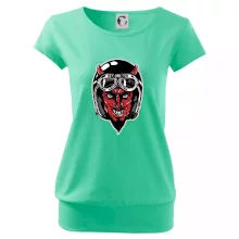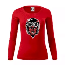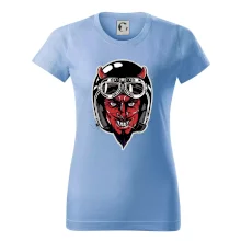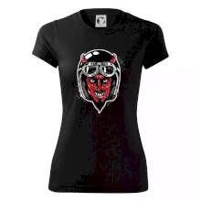 Triko pro motorkáře, na kterém je ďábel s helmou, je skvělý dárek pro motorkáře. Černá motorkářská helma ochrání ďábla i tebe. Každý motorkář bude mít triko s ďáblem rád, obzvlášť motorkář, který má rohy. Moto triko je vhodný dárek pokud jsi pravý motorkář.